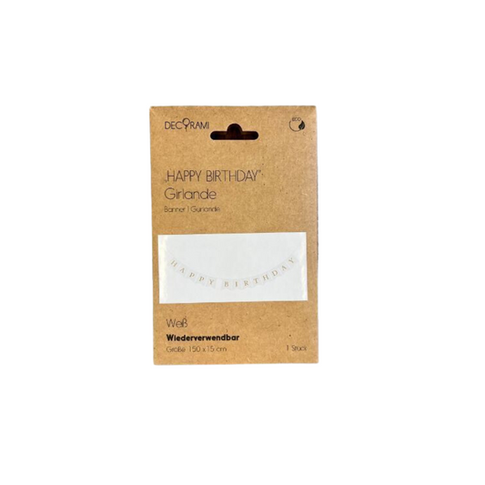 Papiergirlande "Happy Birthday" Weiß