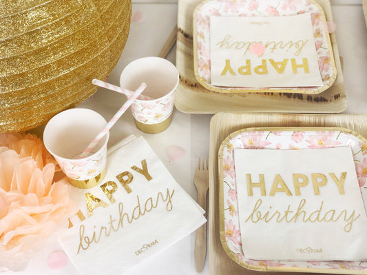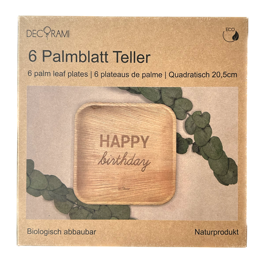Palmblatt Teller "Happy Birthday" 6 Stk.