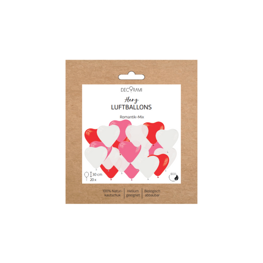 Herzballon-Set Deluxe 4 Farben 20 Stk.